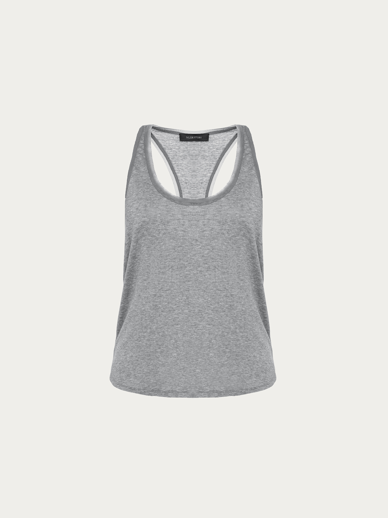 Майка из тонкого вискозного трикотажа в рубчик. Легкая и пластичная, она дает комфортную посадку и свободный силуэт. Глубокий вырез горловины и пройм подчеркивает линию плеч, а спинка-борцовка добавляет графичности.