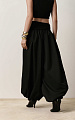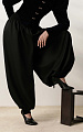 Эта форма отсылает к широко распространённой традиционной татарской поясной одежде — свободным штанам с широким шагом, отличавшимся удобством и пластичностью кроя. Акцент сделан на узких частях фигуры — талии и щиколотках, оформленных манжетами и отрезным поясом из трикотажной ткани-компаньона.