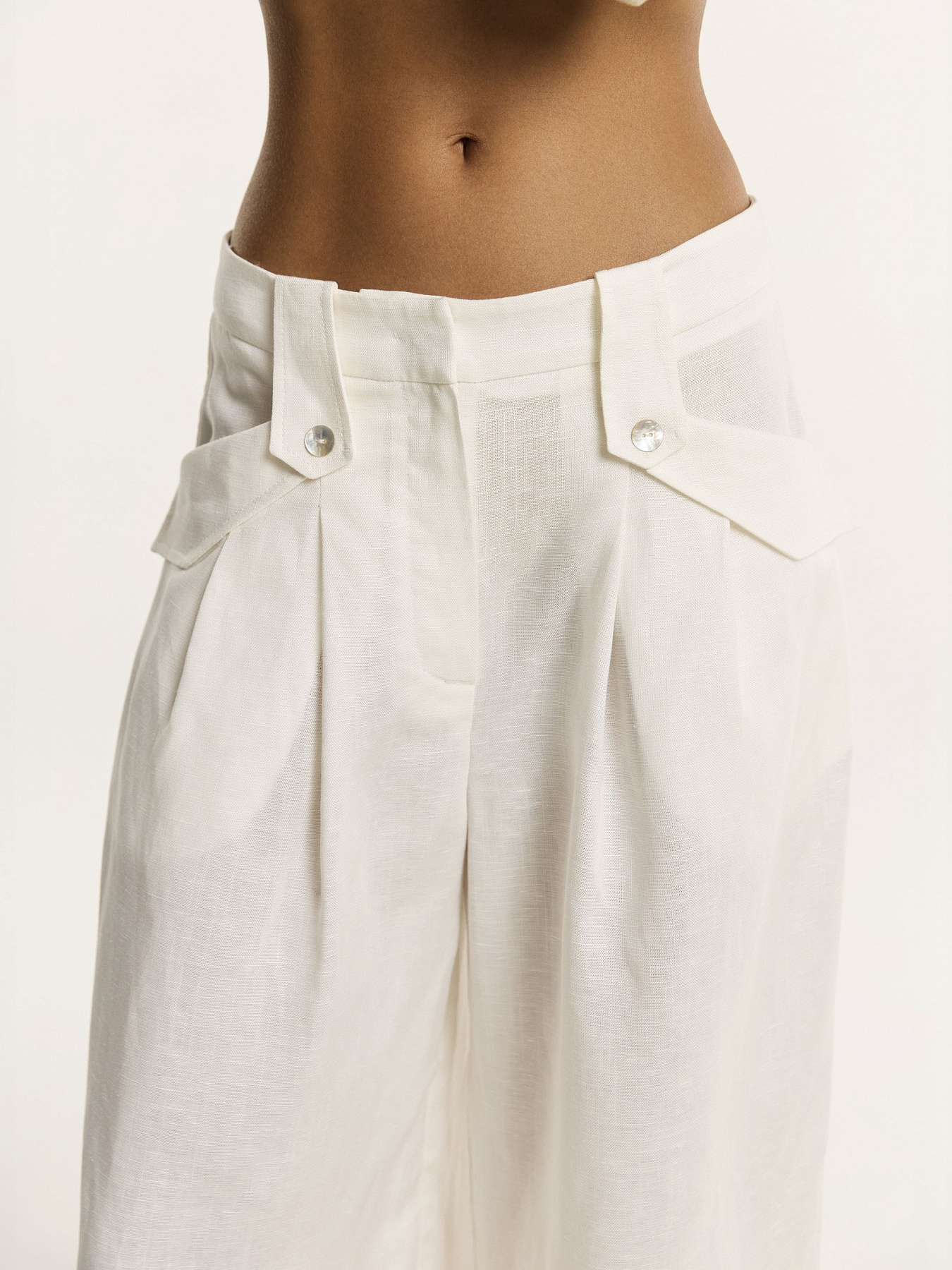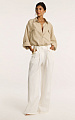 Брюки объёмного прямого кроя в молочном оттенке — лаконичная модель, в которой всё решает силуэт.