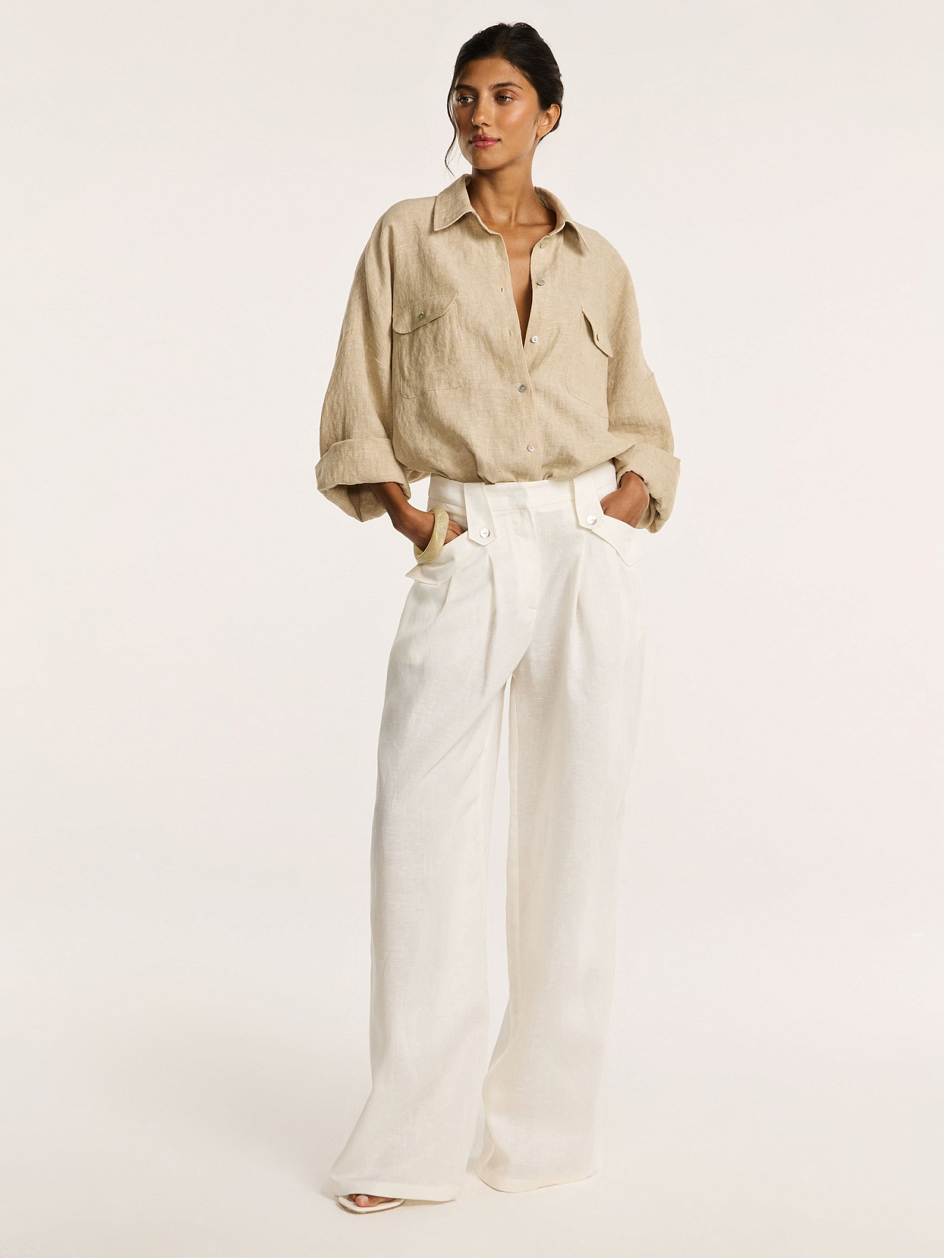 Итальянский лён держит форму, создавая выразительный, но лёгкий объём.
