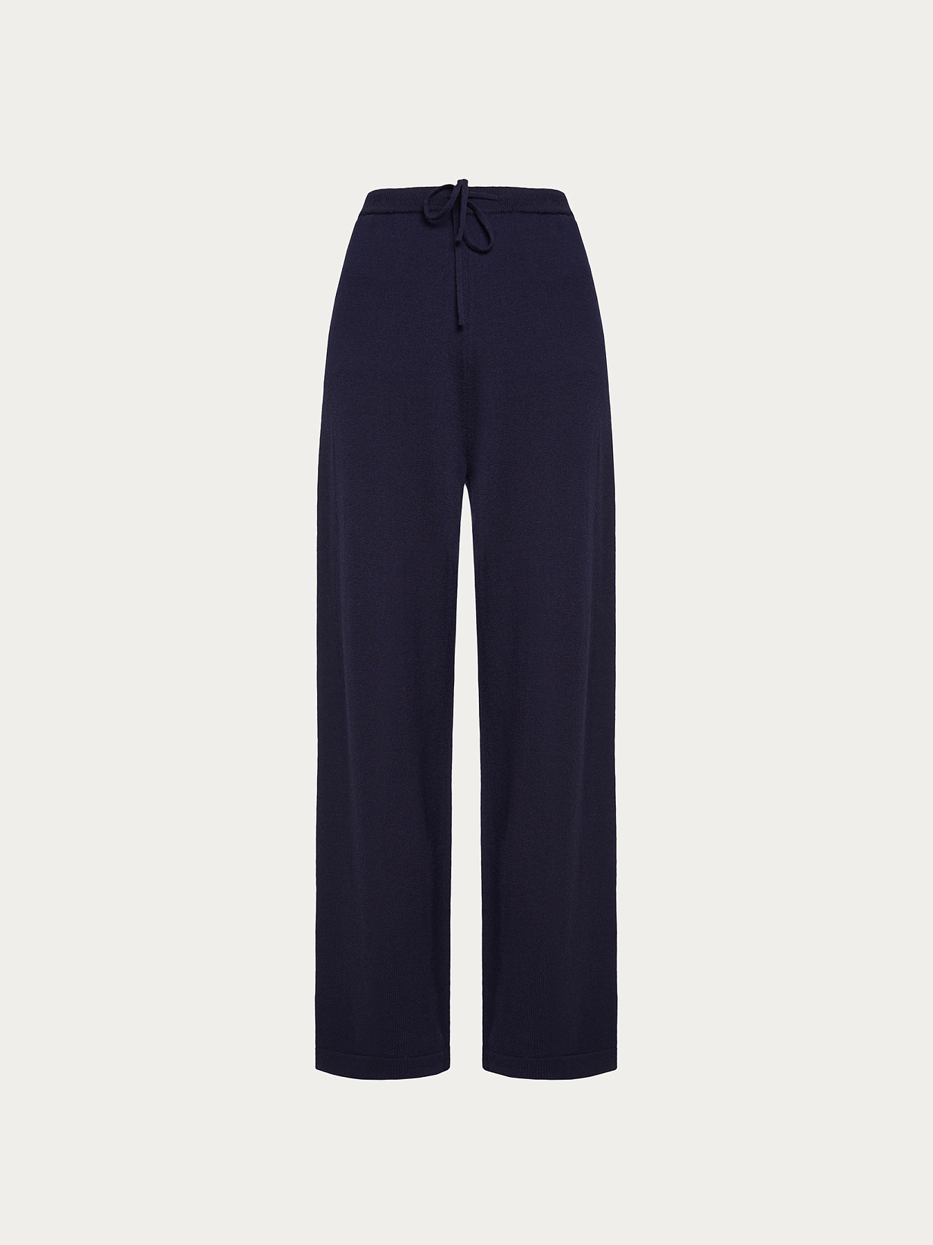 Свободные трикотажные брюки из итальянской пряжи на основе шерсти и кашемира в темно-синем оттенке. Пряжа отличается мягкостью, легким природным пушком и устойчивостью к износу — изделие отлично держит форму и практически не пилингуется.