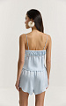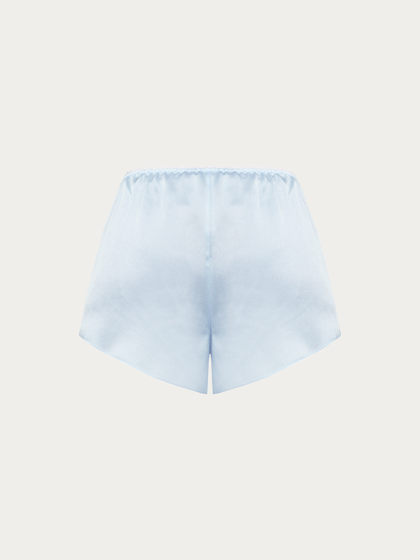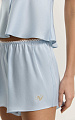 Шорты из итальянской вискозной кади в нежно-голубом оттенке. Свободный крой и укороченная длина создают легкий, расслабленный силуэт. Верхний срез собран в мелкую сборку на аккуратную ажурную резинку, которая мягко фиксирует посадку.