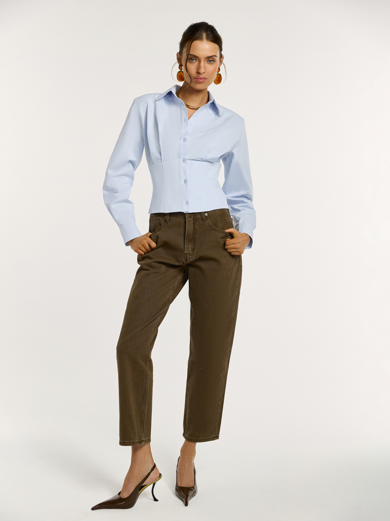 Укороченные джинсы 2011 — идеальный выбор для повседневного образа. Выполнены из качественного итальянского хлопкового денима в темно-коричневом оттенке с высокой посадкой на талии.