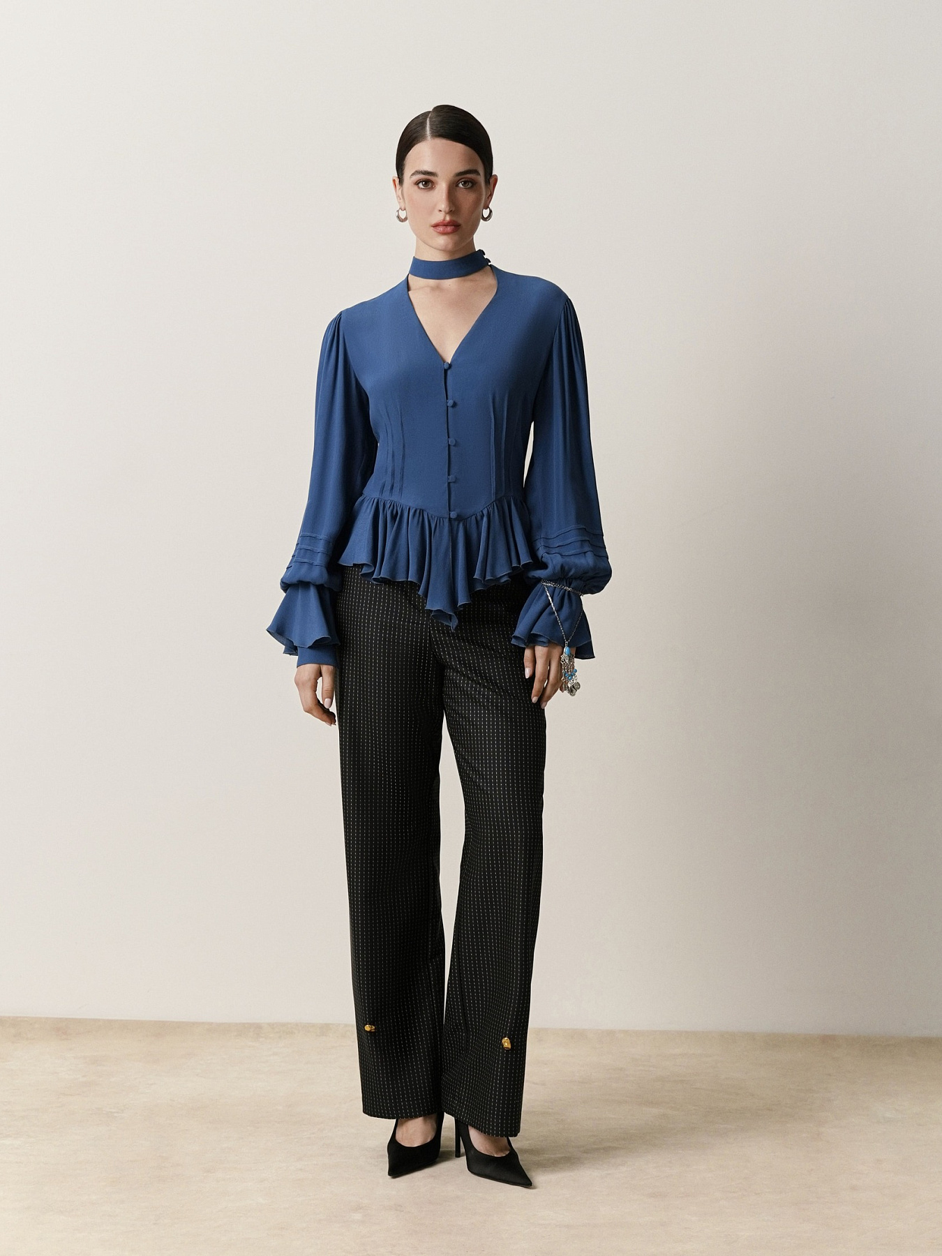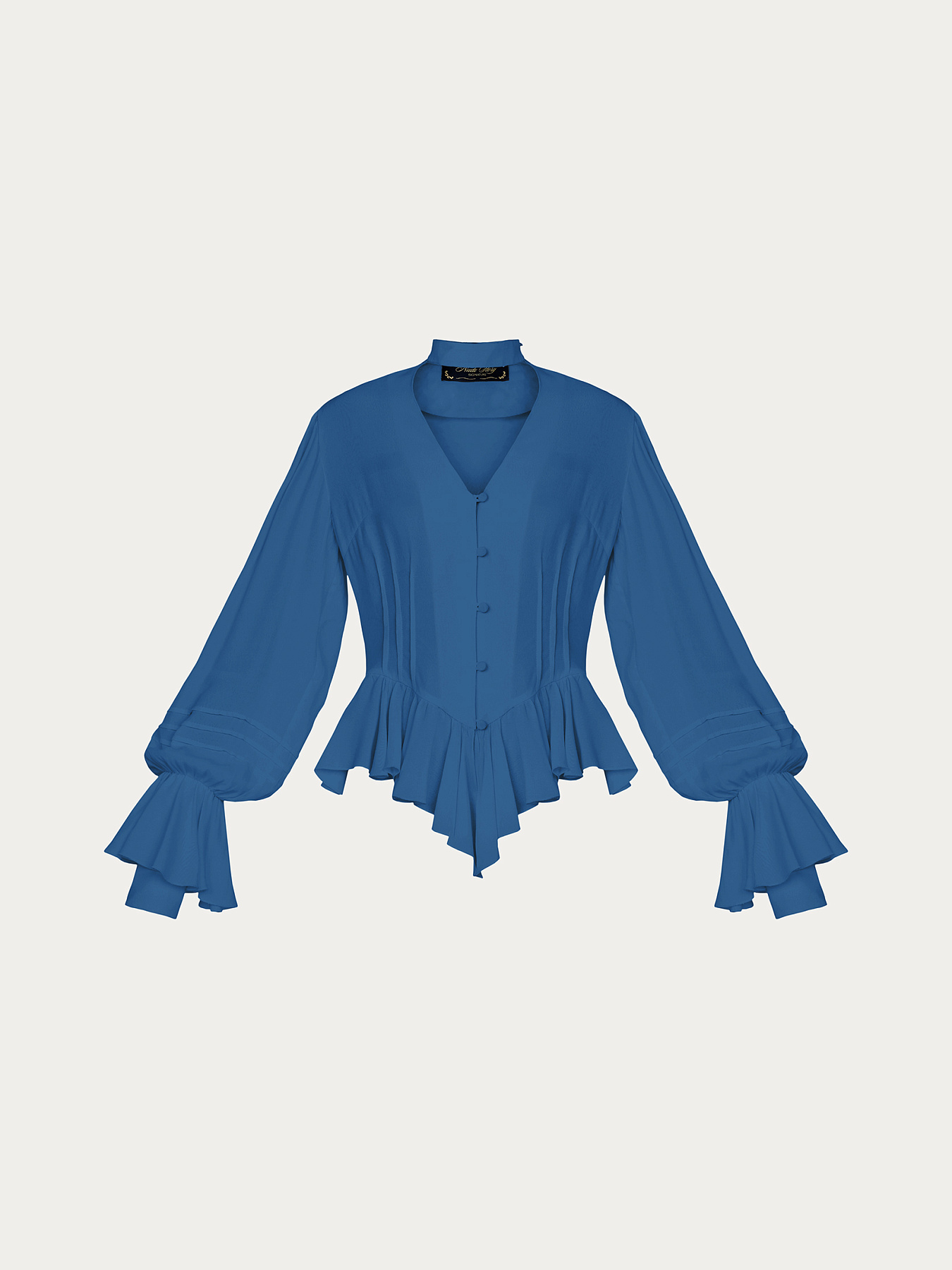 Блуза прилегающего силуэта с воланами из итальянского шифона.