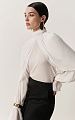 Блуза объемного кроя из итальянского шифона. Свободный силуэт формируется сборкой по линии горловины и расширяющимся кроем от груди, придающим легкость и плавное движение ткани.