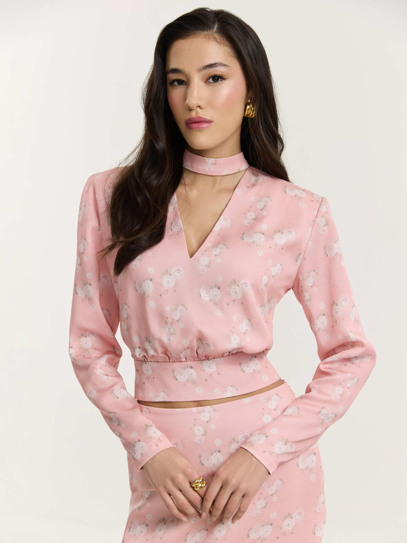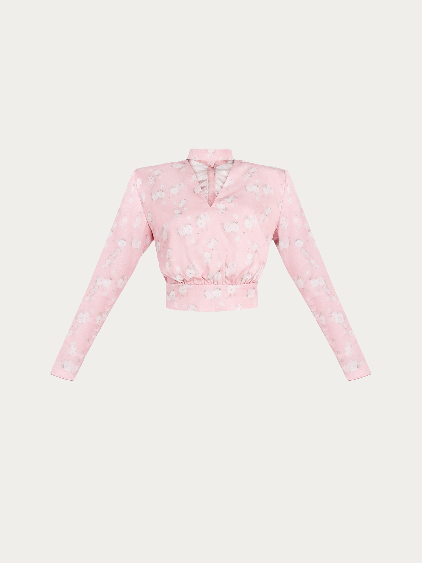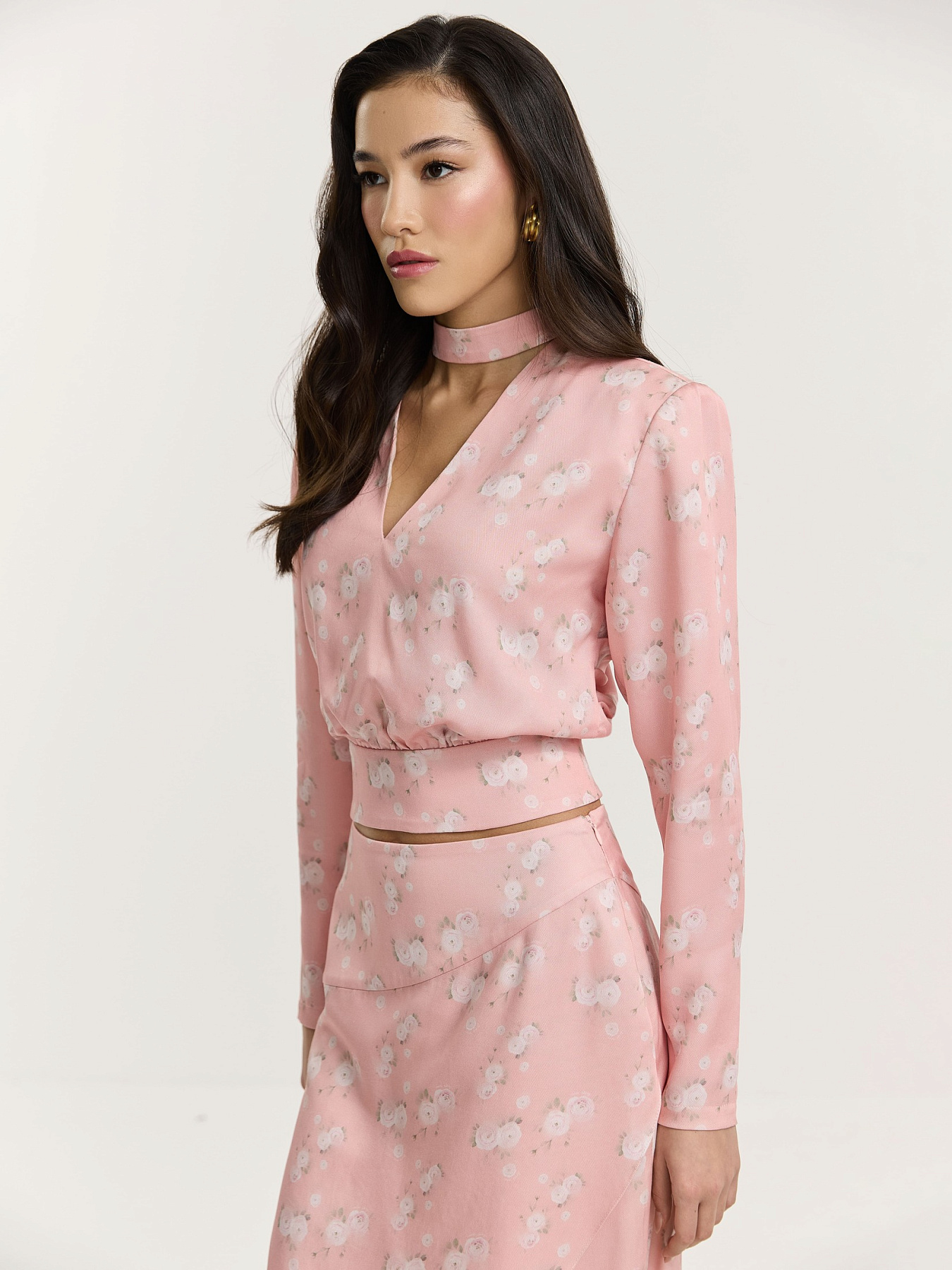 Блуза из принтованной вискозы в нежно-розовом оттенке.