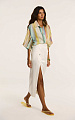 Изделие выполнено из итальянского льна с вискозой: ткань отличается мягким блеском и гладкой поверхностью, деликатно подчеркивающей силуэт.