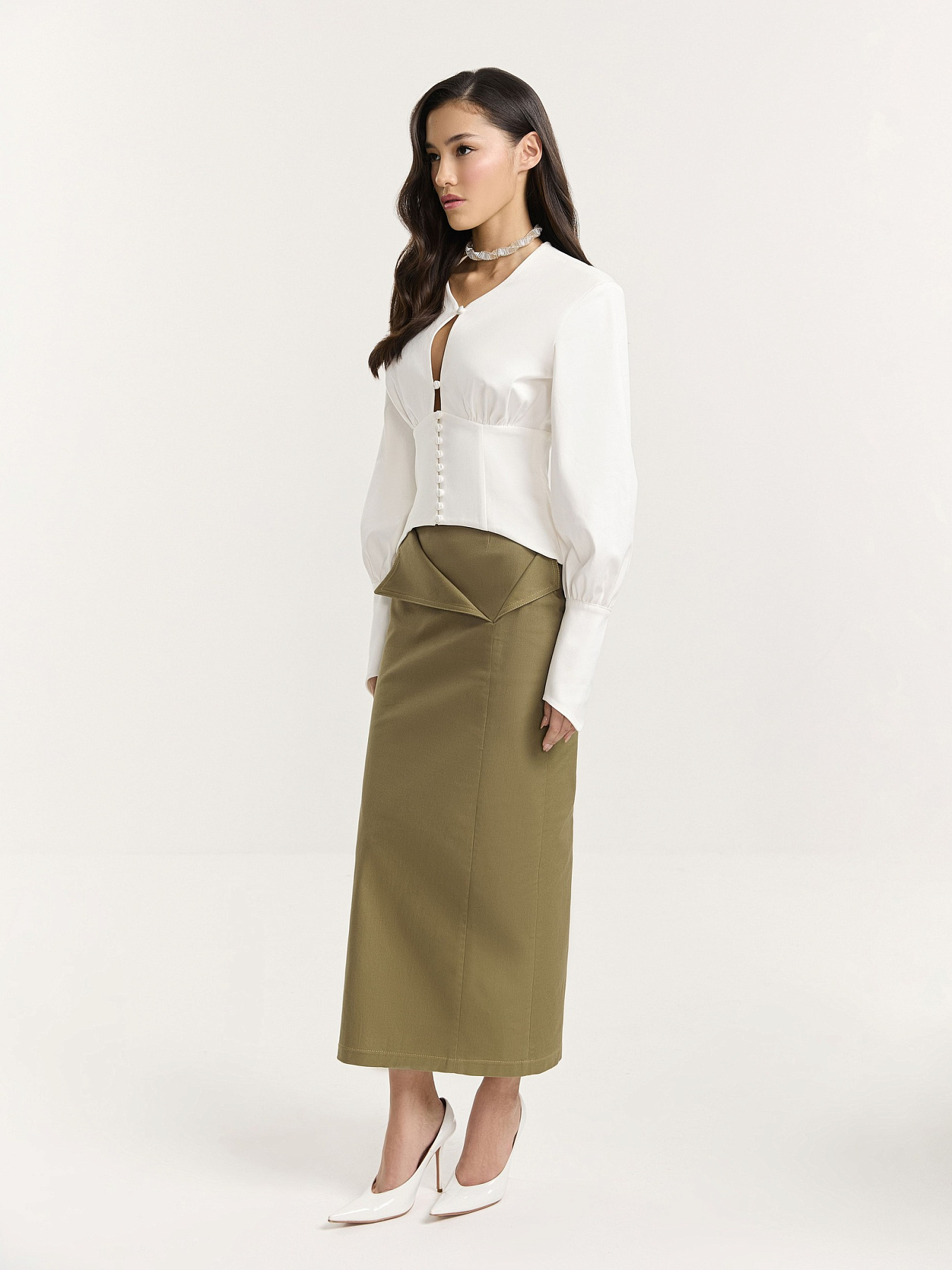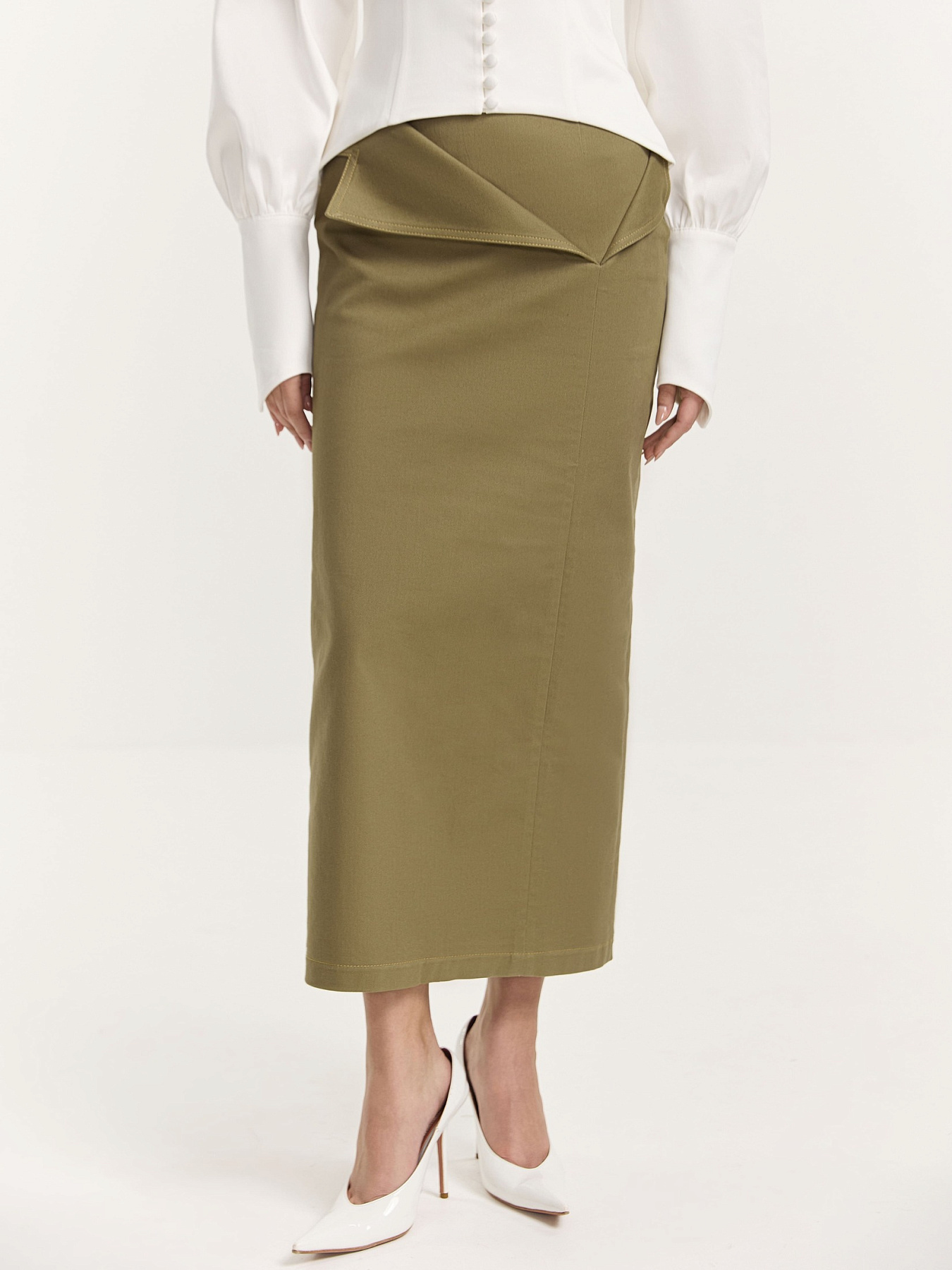 Юбка-карандаш длины миди из итальянского хлопка твилового переплетения, по фактуре напоминающего деним.